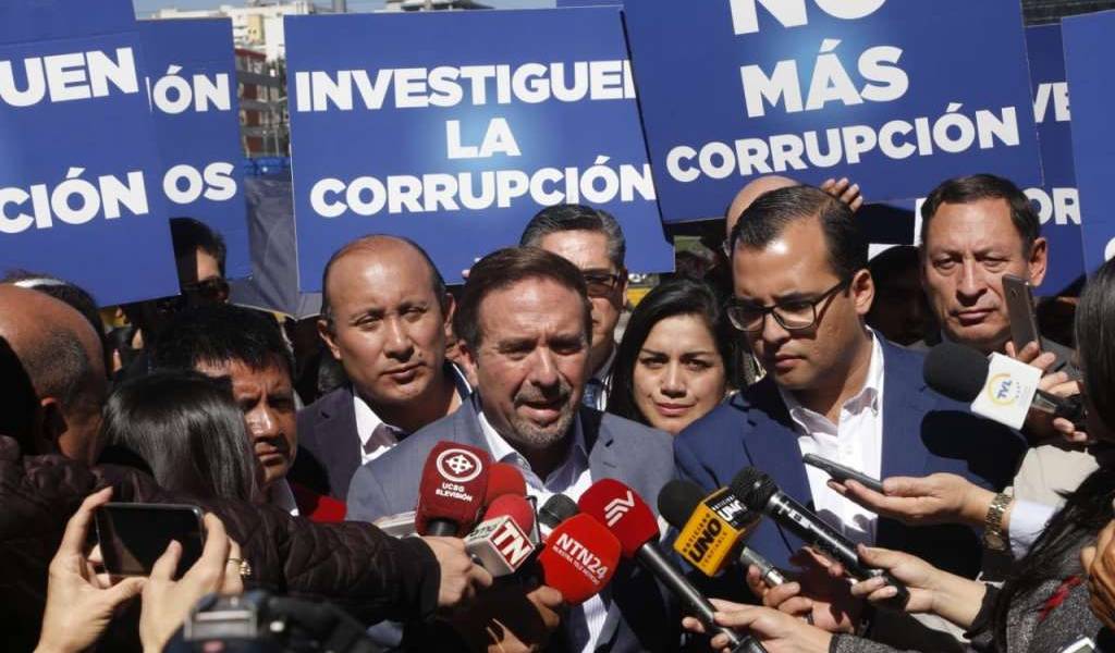 El presidente del movimiento CREO, César Monge, junto con varios asambleístas de esa bancada, entre ellos Héctor Yépez, presentaron la denuncia. “Hoy denunciamos en Fiscalía que se ofrece millón y medio de dólares por el ministerio de Agricultura. Increíble que levanten plata para repartirse cargos y no para ayudar a nuestros campesinos en crisis. Que se investigue todo y a todos”, señaló el legislador.