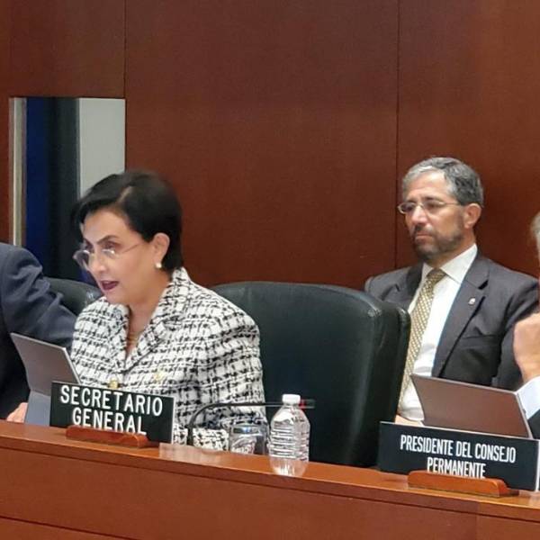 La canciller, Gabriela Sommerfeld expuso ante 33 países miembros, reunidos en Washington, la escalada de violencia que, según ella, se inició con el Caso Metástasis.