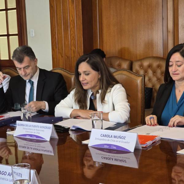 La subsecretaria de Relaciones Exteriores de Chile, Gloria de la Fuente, y el viceministro de Relaciones Exteriores de Ecuador, Jaime Barberis, encabezaron la primera ronda de Consultas Políticas entre ambos países.( )