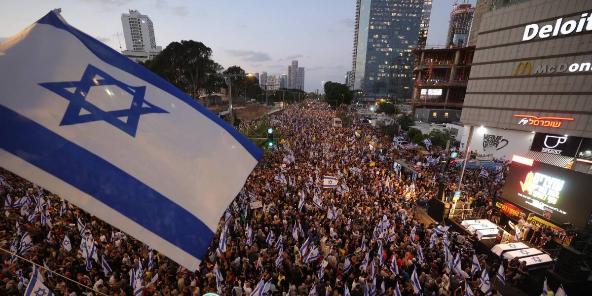 Miles de manifestantes que apoyan a las familias de los rehenes israelíes retenidos por Hamás en Gaza participan en una manifestación de protesta frente a la sede militar de Kyria en Tel Aviv, Israel, el 1 de septiembre de 2024.( )