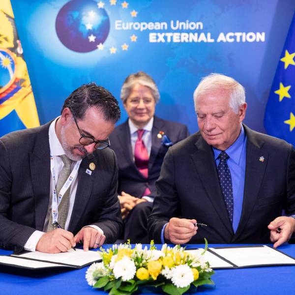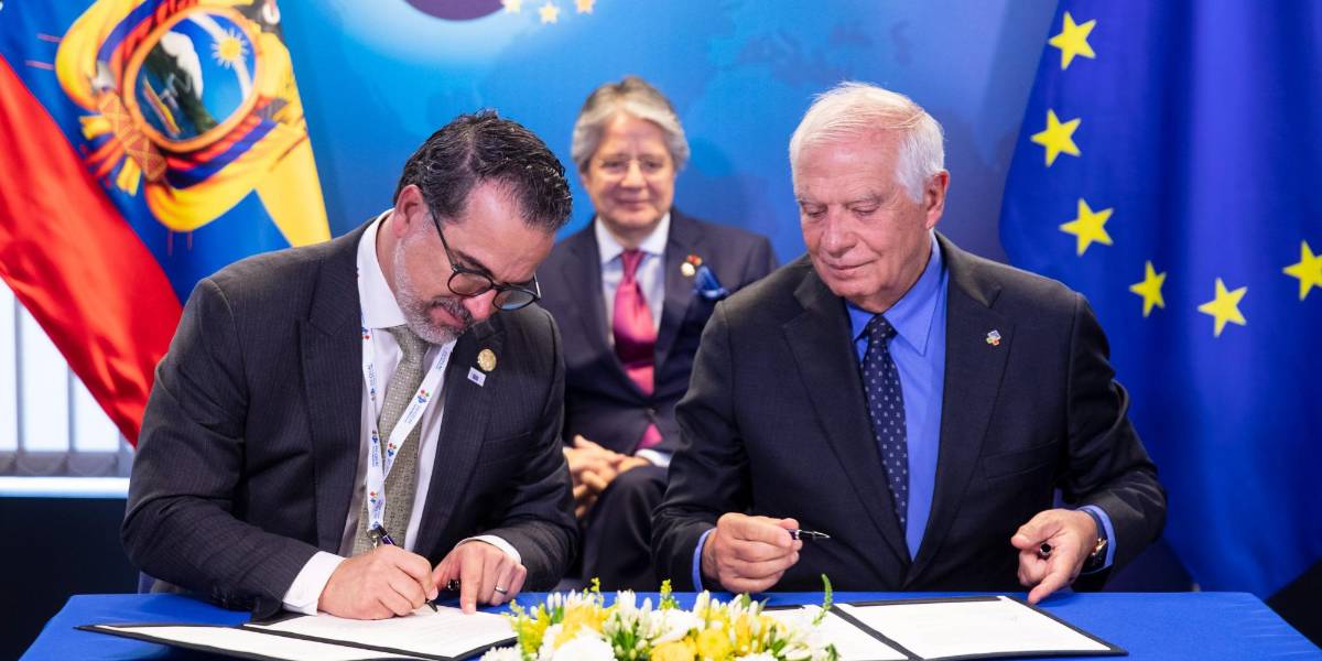 El acuerdo lo firmaron el alto representante de la UE para Asuntos Exteriores, Josep Borrell, y el ministro de Relaciones Exteriores de Ecuador, Gustavo Manrique, en presencia del presidente de ese país, Guillermo Lasso.