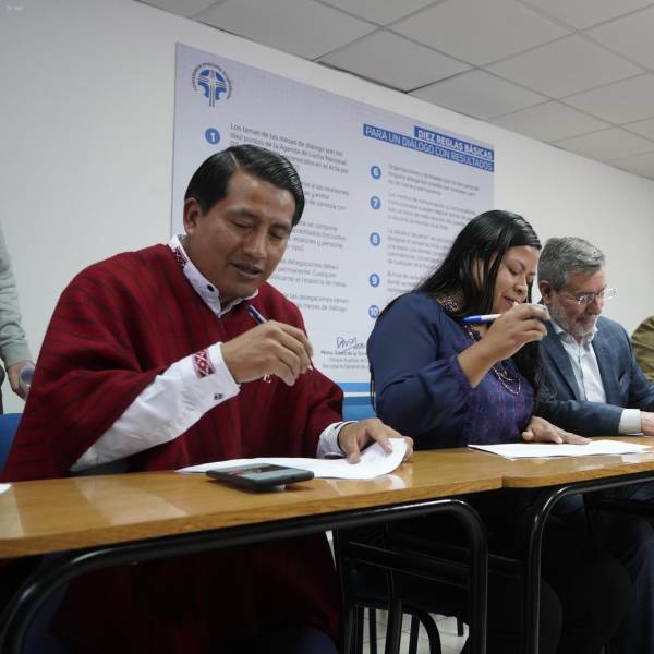 La firma de esa acta se realizó en la sede de la Conferencia Episcopal Ecuatoriana que participa en el proceso de diálogo como garante e impulsora de las conversaciones.