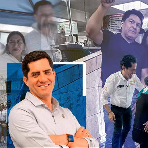 Una composición de las facetas de Xavier Hervas en esta campaña anticipada para las elecciones del próximo 20 de agosto. ( )