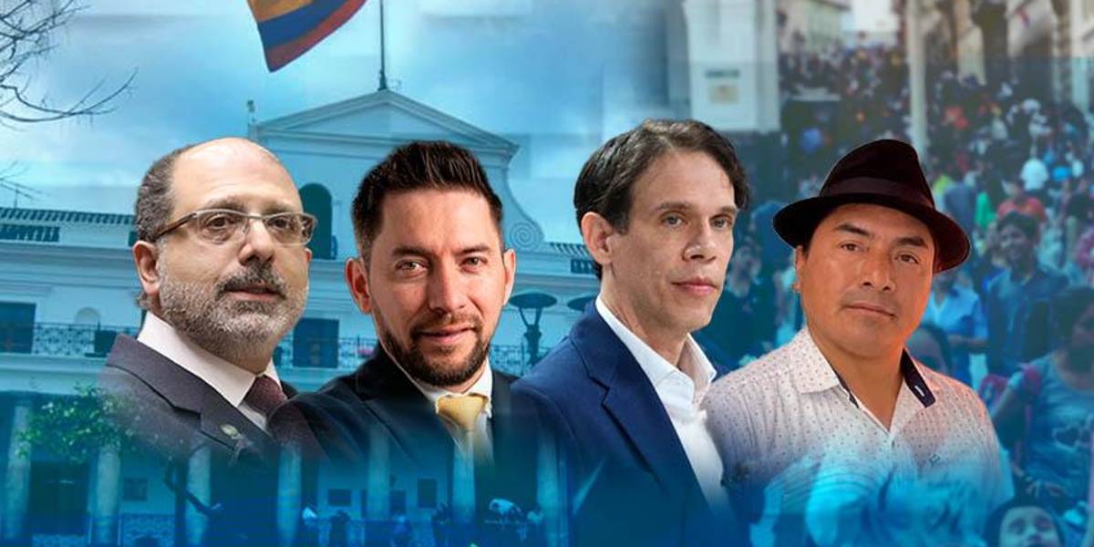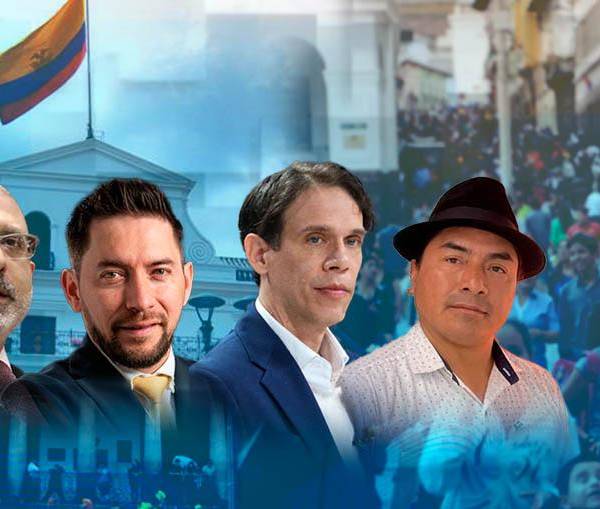 Henry Kronfle, Luis Tillería, Pedro Granja y Leonidas Iza, candidatos presidenciales( )