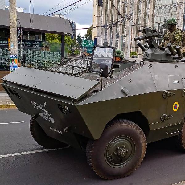 Soldados y tanquetas patrullan los exteriores del canal Ecuador TV, a donde acudirán los candidatos a la Presidencia para el debate. Este empezará a las 19:00 y concluirá a las 22:00.