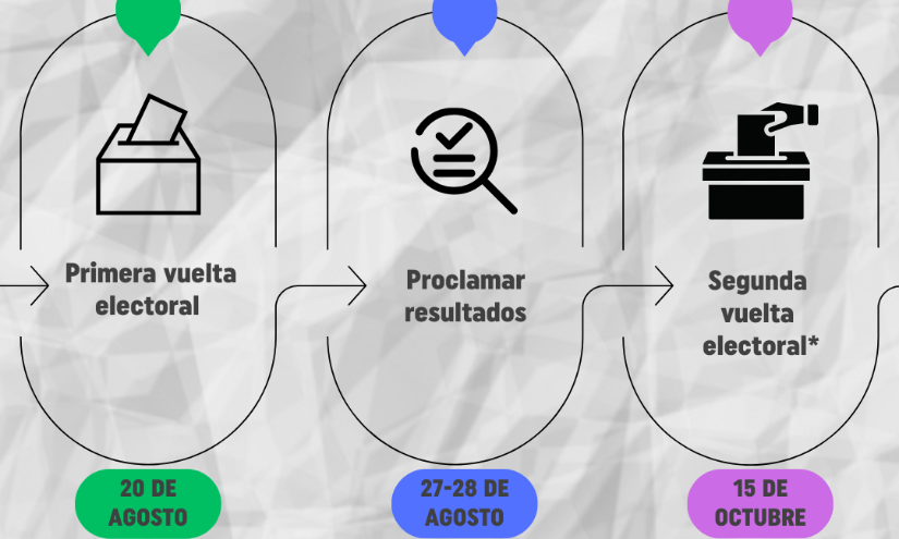 A este cronograma podría sumarse la posible segunda vuelta electoral, que debería tener tener lugar en octubre de este año.