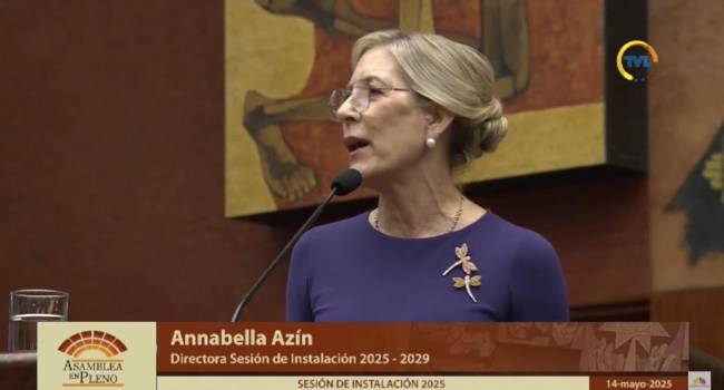 Annabella Azín, al ser la asambleísta más votada, dirigirá la sesión inaugural de la Asamblea. Dio un discurso en el que mencionó que los ecuatorianos sienten paz desde el 13 de abril, cuando su hijo Daniel Noboa ganó la Presidencia de la República.