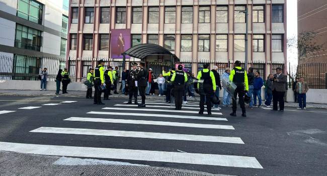 Germán León, jefe del Distrito Manuela Sáenz, detalló que hay presencia de la unidad de mantenimiento de orden, el Crac, escuadrón de drones, un helicóptero, subsistemas investigativos y de inteligencia.