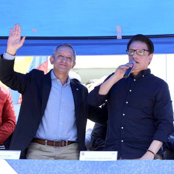 El exministro acompañó al candidato presidencial en su último mitin político, en Quito. El postulante a legislador indica que, si bien "debe haber responsabilidades administrativas" por las falencias en el circuito de seguridad, el objetivo principal de la investigación debe ser identificar y castigar a los autores materiales e intelectuales del asesinato del también periodista.
