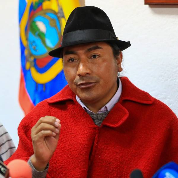 Foto de archivo del presidente de la Confederación de Nacionalidades Indígenas de Ecuador (Conaie), Leonidas Iza. EFE/ José Jácome