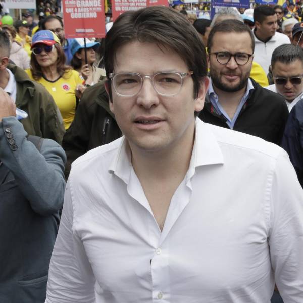 23 de noviembre de 2024. Foto del senador de la oposición Miguel Uribe (c) durante una manifestación. ( )