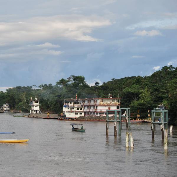 Vista del puerto fluvial de ingreso al Bloque 43-ITT, el 20 de junio de 2023, en el Parque Nacional Yasuní. ( )