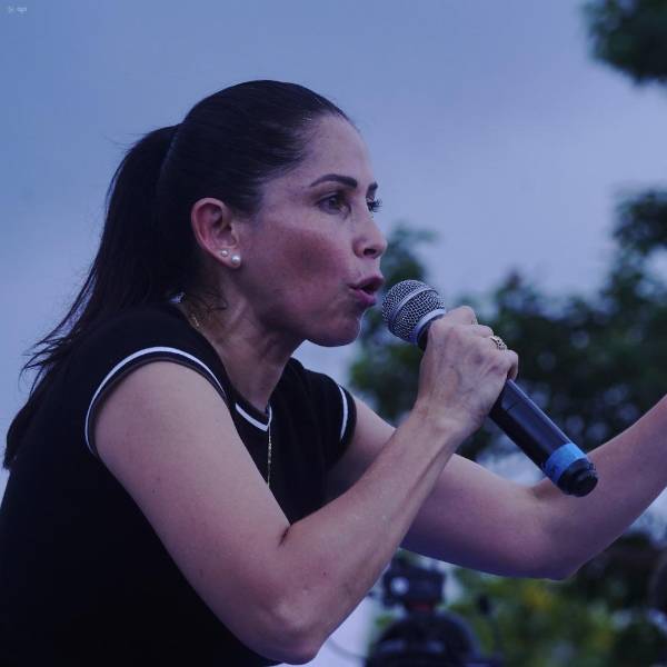 Imagen de Luisa González, candidata presidencial del correísmo, en un evento de campaña en Guayaquil el 2 de abril del 2025.( )
