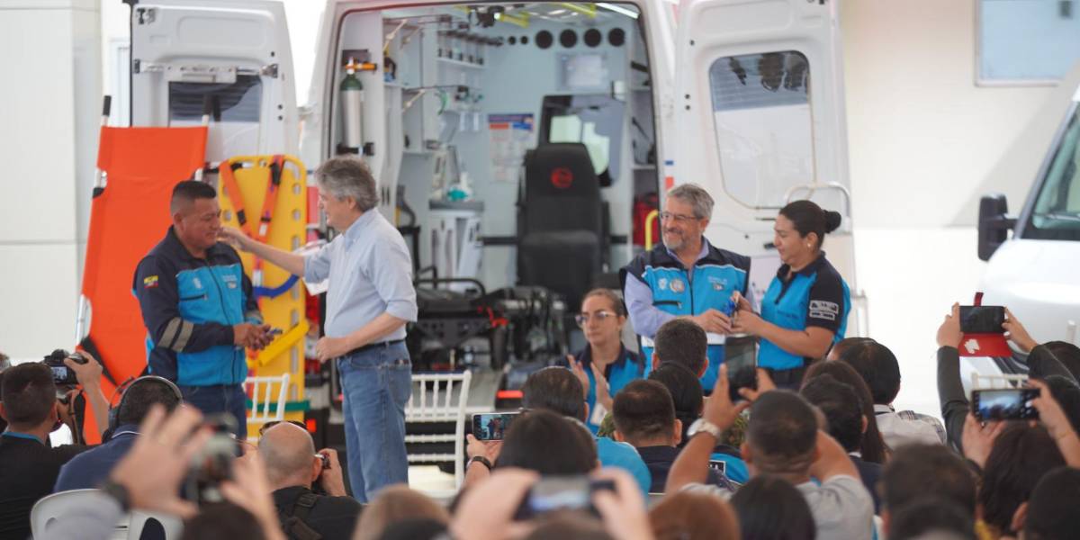 Guillermo Lasso durante la entrega de ambulancias en Manta( )