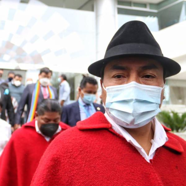 El presidente de la Confederación de Nacionalidades Indígenas del Ecuador (Conaie), Leonidas Iza, y varios asambleístas de Pachakutik presentaron este lunes 13 de diciembre una demanda de inconstitucionalidad en contra de la Ley para el Desarrollo Económico y Sostenibilidad Fiscal tras la pandemia del COVID-19 (reforma tributaria).
