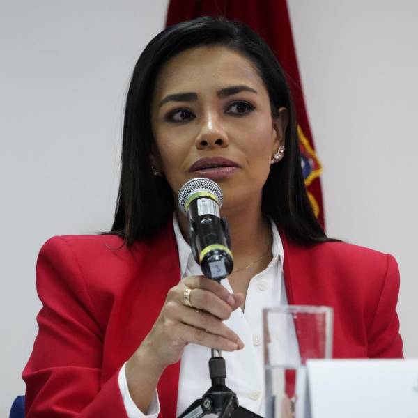 Fotografía de Jeannine Cruz durante una rueda de prensa en Quito. ( )