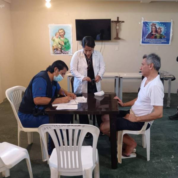 Imagen del 9 de abril de 2024. Al exvicepresidente Jorge Glas le realizaron un examen psicológico y médico antes de ingresar a su celda en La Roca.( )