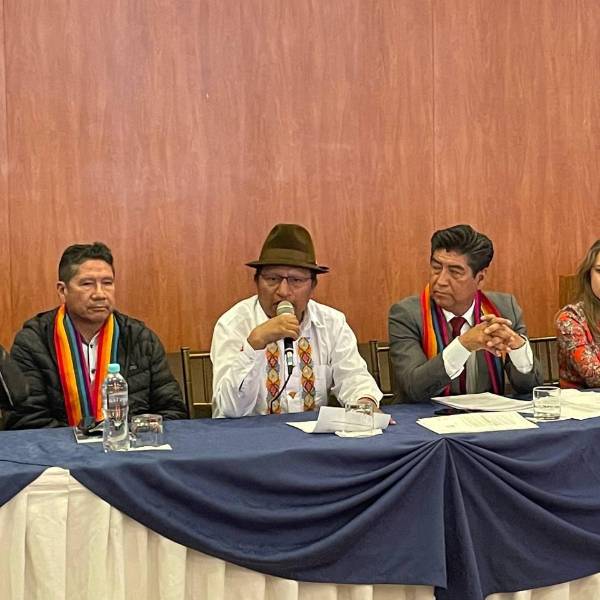 El excalcalde de Quito, Jorge Yunda, se presentó en una rueda de prensa junto con representantes de Pachakutik