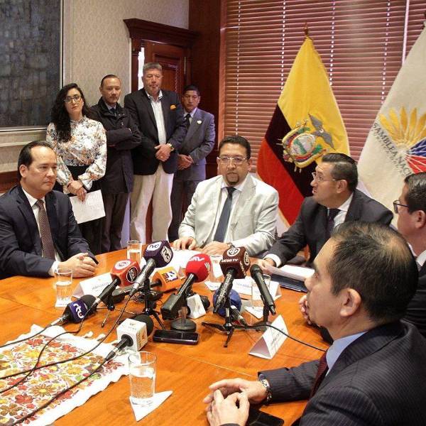El presidente de la Asamblea, Virgilio Saquicela, recibió a los representantes de las otras funciones del Estado, como una señal de que el trámite legislativo se hará a brevedad.