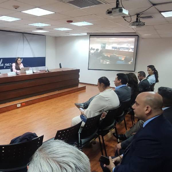 Rigoberto Gómez, director general administrativo, expuso siete normativas internas, para situaciones de emergencia, así como los perfiles de riesgo que se aplican en el caso amenazas o ataques al sistema judicial.