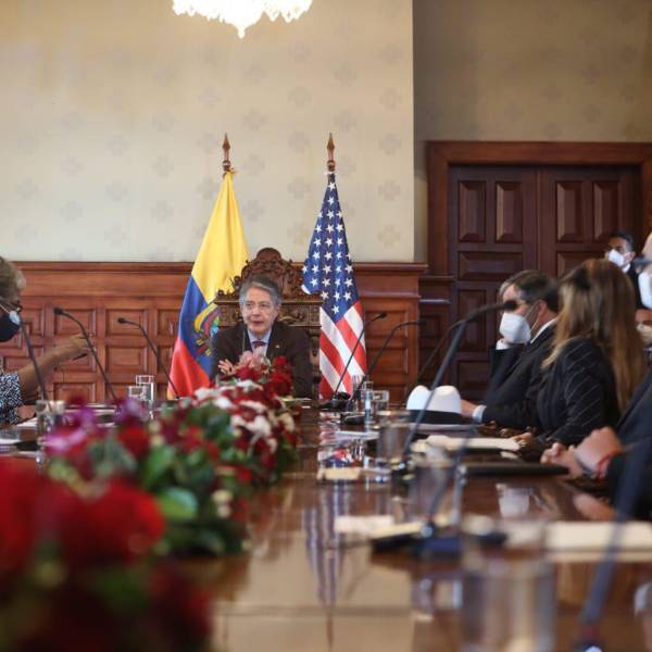"Creo que todos conocemos las tradicionales buenas relaciones que tiene Ecuador con los Estados Unidos, y en nuestro gobierno tenemos el claro propósito de fortalecer aún más esas buenas relaciones", indicó Lasso, quien mantuvo hoy una reunión con representantes de esa nación. En la cita, que tuvo lugar en el Palacio de Carondelet, en Quito, Lasso estuvo acompañado del canciller, Mauricio Montalvo, y de la embajadora de Ecuador en EE.UU., Ivonne Baki, entre otras autoridades.
