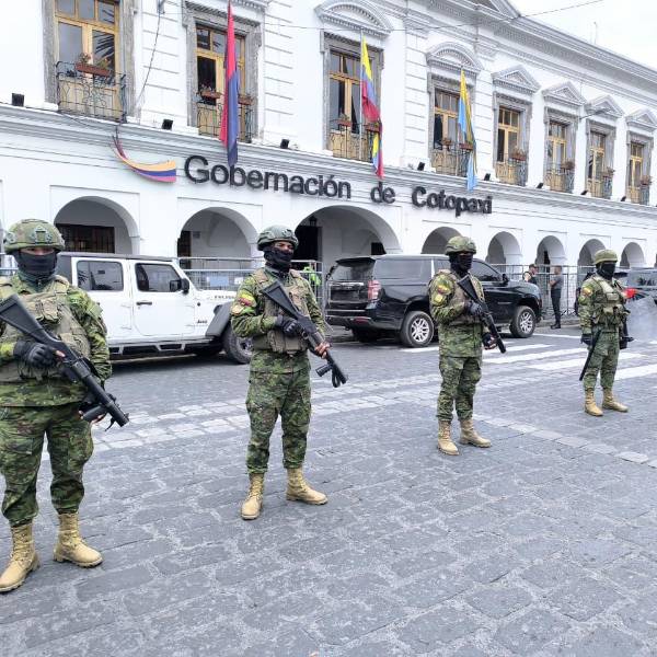 Latacunga, la sede temporal de la Función Ejecutiva, amaneció militarizada este lunes. La seguridad de las instalaciones de la gobernación de Cotopaxi, en donde despachan las autoridades del gobierno central, fue rigurosa.
