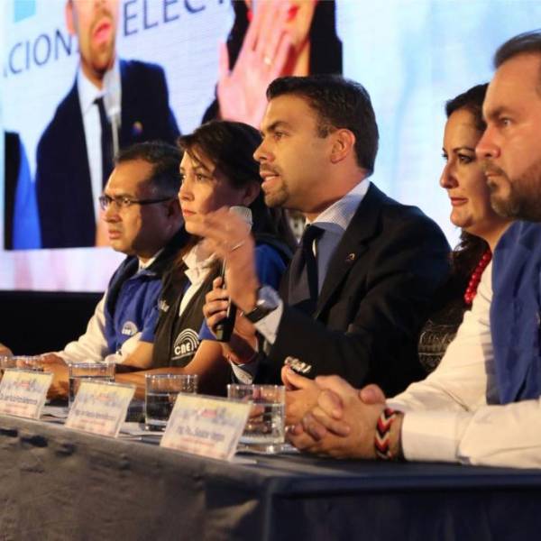 El presidente del CNE, Juan Pablo Pozo, señaló previo al cierre de la jornada electoral que la entidad dará a conocer el primer consolidado oficial a las 20H00, y recalcó que los resultados de los exit polls no son oficiales.