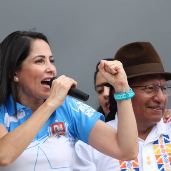 Ella aún realiza recorridos por varios sectores de la ciudad. Entre sus acompañantes constan el asambleísta de la RC-RETO, Raúl Chávez, y el coordinador de Pachakutik, Guillermo Churuchumbi.