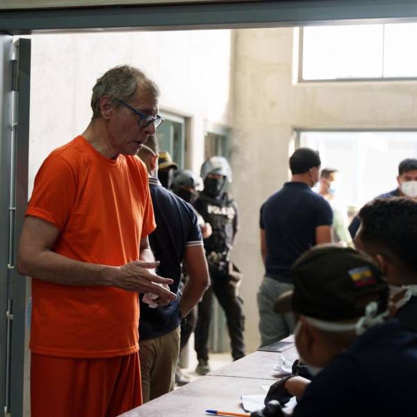 Glas fue trasladado a la nueva prisión con varios líderes de bandas criminales encarcelados, y fue Noboa quien compartió las primeras imágenes del exvicepresidente en esa instalación, donde se le veía con un aspecto desaliñado y una expresión desconcertada, ataviado con el habitual uniforme naranja que llevan los reclusos de las prisiones ecuatorianas.