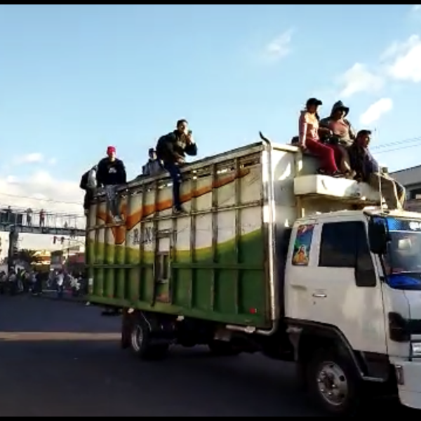 Momento en el que camiones con manifestantes ingresan a la capital desde el sur. ( )