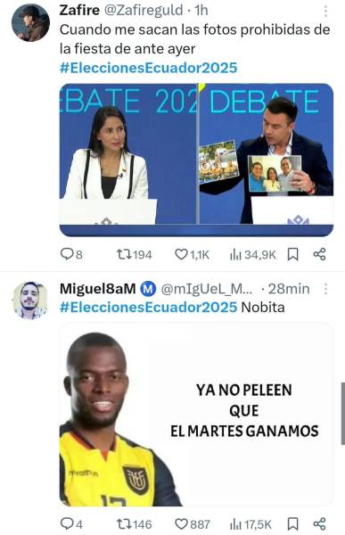 Estos son los memes que dejó el debate presidencial de la segunda vuelta 2025 entre Daniel Noboa y Luisa González