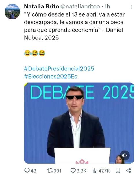 El debate presidencial de la segunda vuelta electoral 2025 entre Daniel Noboa y Luisa González no solo dejó confrontaciones y acusaciones. También generó una gran cantidad de memes por parte de los internautas, quienes aprovecharon algunas de sus intervenciones para ironizar y humorizar con los candidatos.