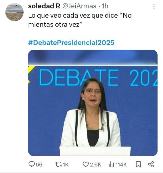No pasó para nada desapercibido la frase que usó la misma candidata González: "No, Noboa, no mientras otra vez". Expresión idéntica a la que usó Guillermo Lasso en un debate presidencial contra Andrés Arauz en 2021: "Andrés, no mientras otra vez", decía en su momento.