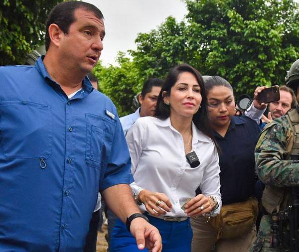 Imagen de Luisa González con militares, en un recorrido realizado en septiembre de 2023.( )