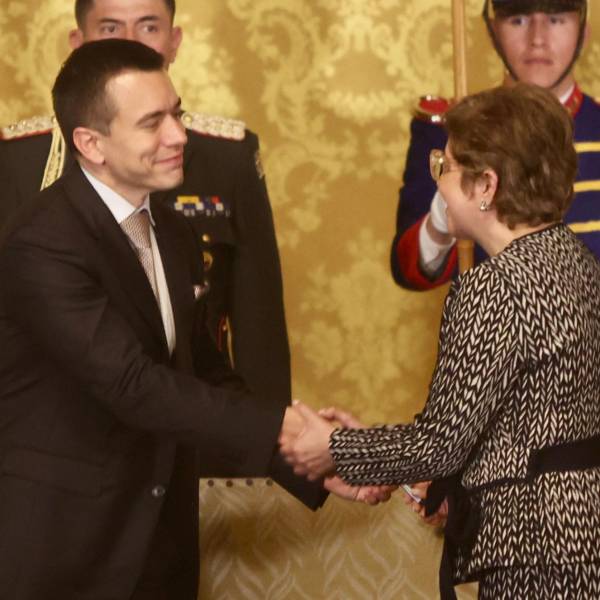 Foto del 23 de noviembre de 2023 en el que Daniel Noboa posesiona a Ivonne Nuñez como ministra de Trabajo.( )