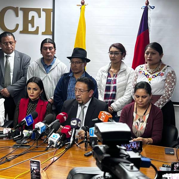 En una rueda de prensa por fuera de la Asamblea y acompañado de asambleístas como Yeseña Guamaní (ID), Mireya Pazmiño (exPK) y Fernando Cabascango (PK), este 17 de mayo, Saquicela defendió el derecho de fiscalización que tiene el Legislativo, refiriéndose al juicio político en contra de Lasso.