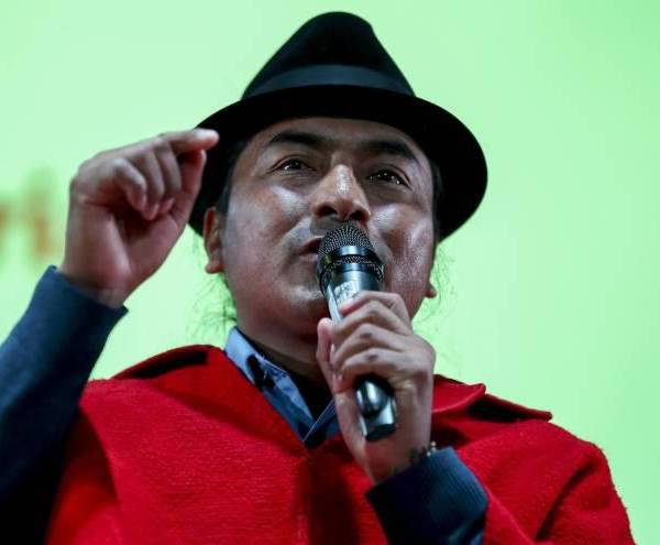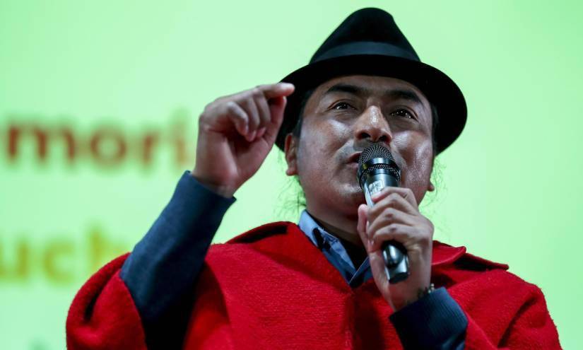 Iza estuvo acompañado por varios representantes indígenas, como Zenaida Yasamaca, vicepresidenta de la Conaie, y Mireya Pazmiño, exasambleísta afín al movimiento indígena.