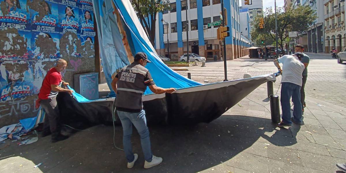 El lunes 31 de julio también fue retirada propaganda electoral, en las calles Machala y Vélez, de una lona con el candidato presidencial Otto Sonnenholzner y el aspirante a la Asamblea Nacional Robert Friend, ambos de la alianza Actuemos.