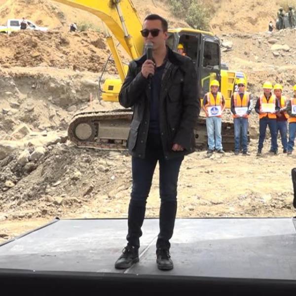 Imagen del presidente Daniel Noboa en el inicio de una obra vial en Chimbo, Bolívar.( )