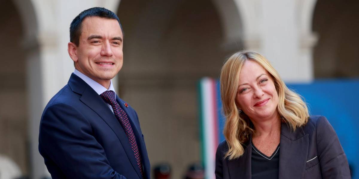 Daniel Noboa saluda con la presidenta del Consejo de Ministros de Italia, Giorgia Meloni.( )