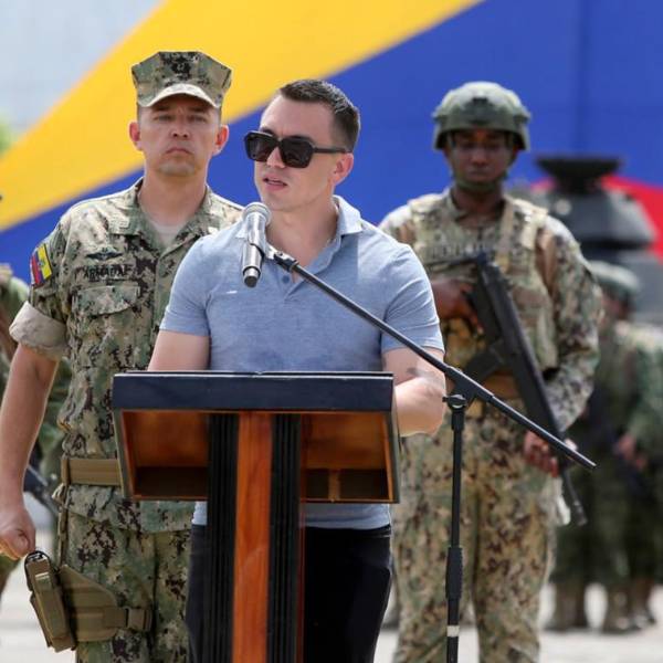 Imagen del presidente Daniel Noba en el Fuerte Militar Héroes de Chacras, en Machala, en enero de 2025.( )