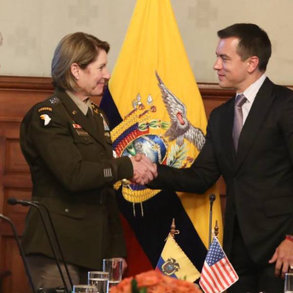 Laura Richardson, jefa del Comando Sur, y el presidente Daniel Noboa en Carondelet durante una reunión en Carondelet( )