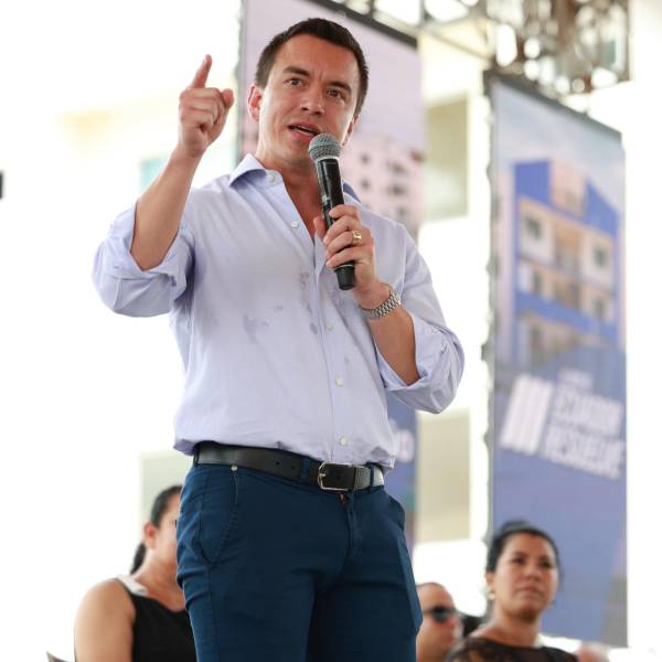 Daniel Noboa en un evento en Guayaquil el 4 de febrero. ( )