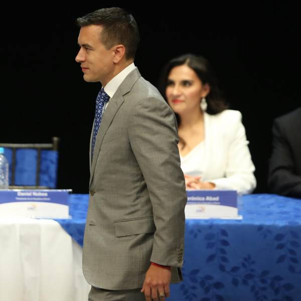 Imagen del 15 de noviembre de 2023, cuando Daniel Noboa y Verónica Abad recibieron sus credenciales como presidente y vicepresidenta de la República, respectivamente.( )
