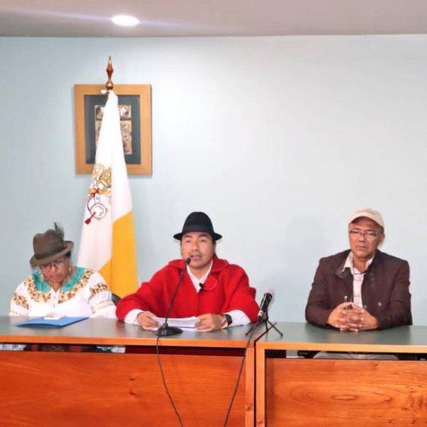 Lo hizo en el marco del informe sobre los avances de las mesas de diálogo que dieron los dirigentes del movimiento indígena. Lo acompañaba Gary Espinoza, titular de la Confederación Nacional de Organizaciones Campesinas, Indígenas y Negras (Fenocin) y otros dirigentes.