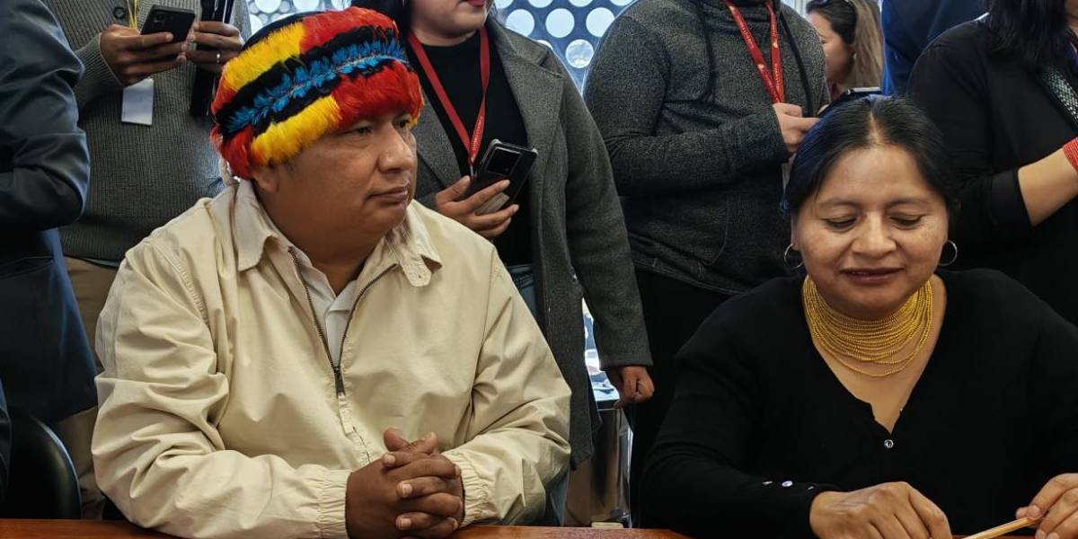El presidente y la vicepresidenta de la Confederación de Nacionalidades Indígenas del Ecuador (Conaie), Marlon Vargas y Ercilia Castañeda, acudieron a la Comisión de Garantías Constitucionales, Derechos Humanos de la Asamblea Nacional, este martes 30 de septiembre de 2025.