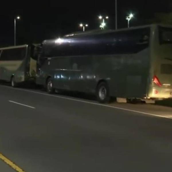 Imagen de buses militares con destino a la provincia de Imbabura, epicentro del Paro Nacional 2025.( )