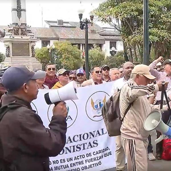 Es la primera marcha del Frente Nacional de Pensionistas del Issfa en rechazo al nuevo Proyecto de Ley de Régimen Especial de Seguridad Social de las Fuerzas Armadas. La semana pasada, la Comisión del Derecho al Trabajo de la Asamblea Nacional reactivó el proyecto, represado por más de tres años.