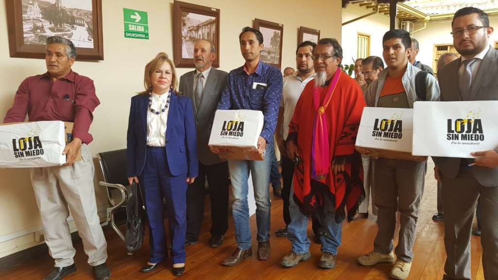 Armijos estuvo acompañado de dirigentes gremiales, quienes junto a él cargaban tres cartones en los que se entregaron 6.314 formularios. Por ello, Armijos tiene la seguridad de que sus acciones llevarán a un proceso electoral en el que se decida la permanencia o no de Bolívar.