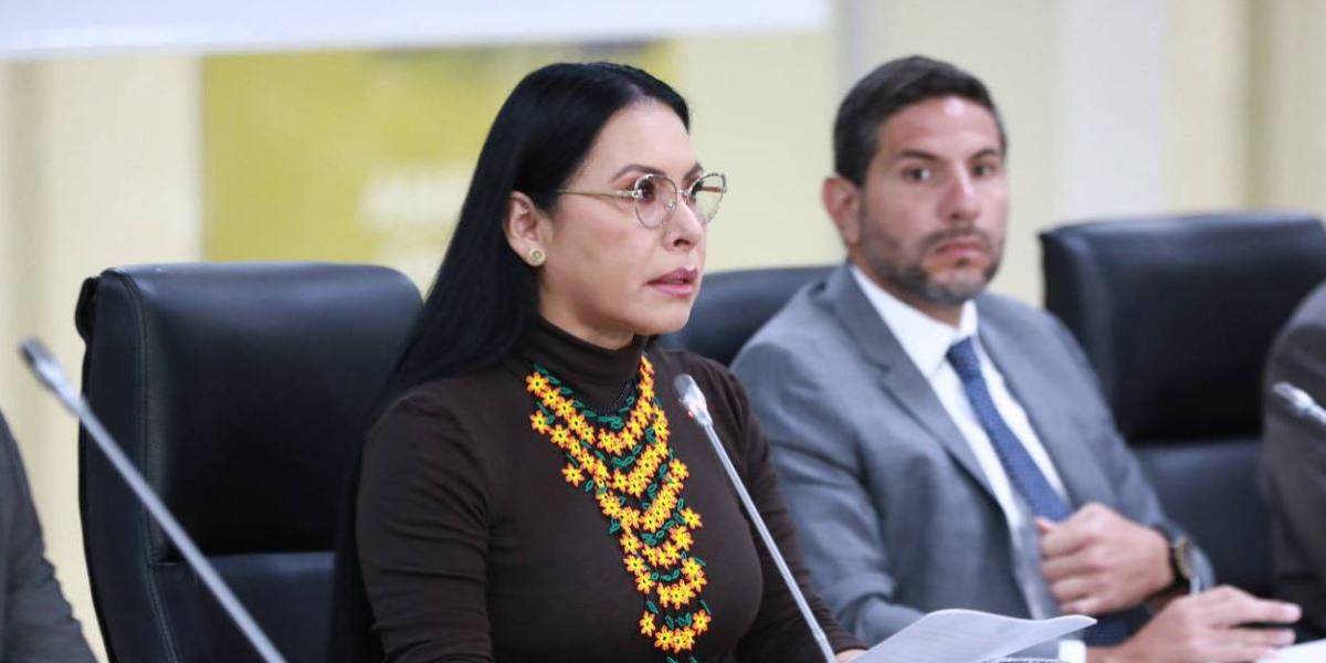 Diana Atamaint, presidenta del CNE, en la activación de la mesa de seguridad electoral.( )